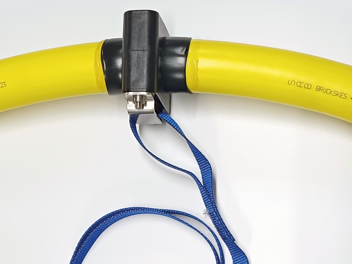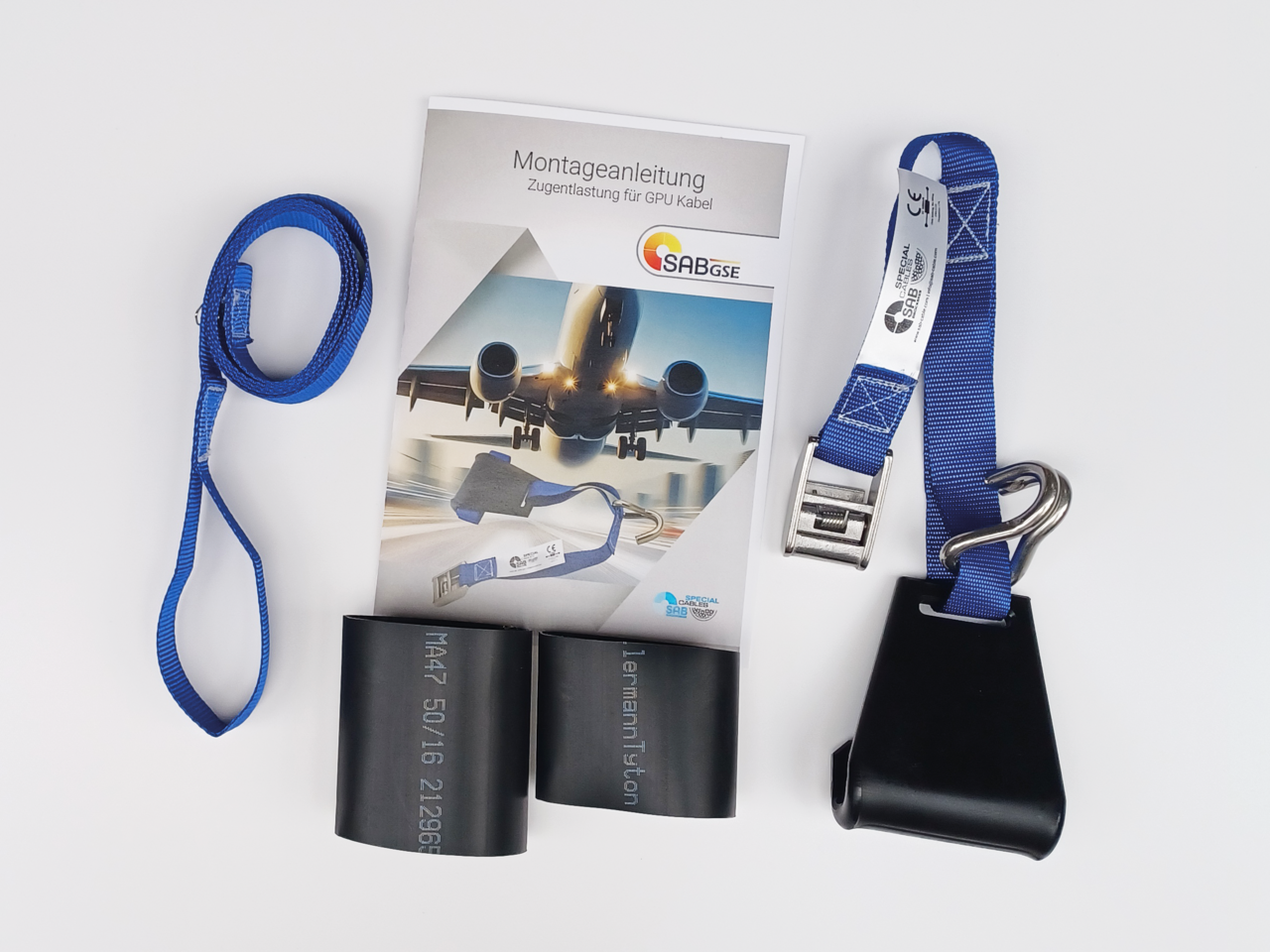 Die Zugentlastung dient als zuverlässige Sicherheitsmaßnahme, um ein unbeabsichtigtes Herausziehen des Kabels aus der Steckeraufnahme am Flugzeug zu verhindern. Sie kann einfach am Stecker eingehängt werden – entweder über einen Haken oder, bei bestimmten Flugzeugtypen wie B737/B757, über eine spezielle Kunststoffkralle.