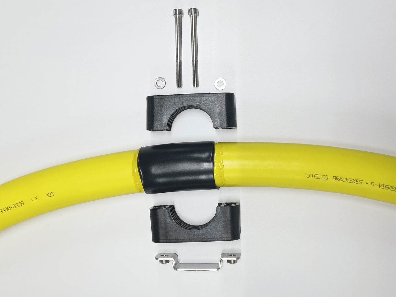 Positionieren Sie die Kabelklemme mittig auf dem vorbereiteten Bereich / Klebeband.
