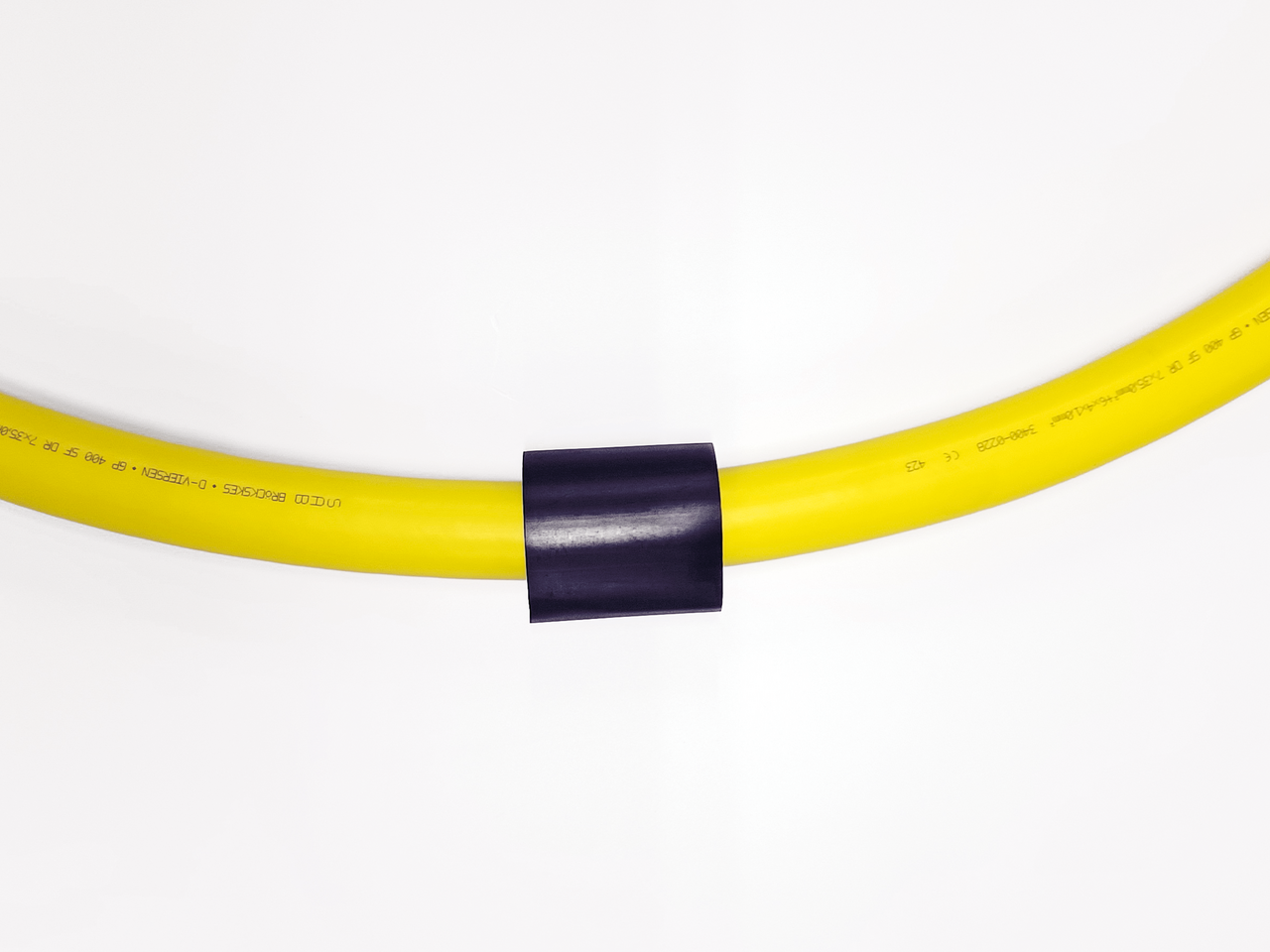 Wenn das Kabel bereits mit einem Gerät verbunden ist, bringen Sie an der vorgesehenen Position ein selbstverschließendes Klebeband oder ein geeignetes Isolierband auf. Ansonsten montieren Sie den beigefügten Wärmeschrumpfschlauch.