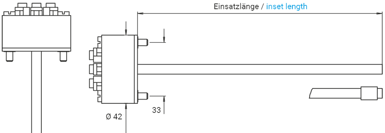 Thermoelemente als Messeinsatz für den Einsatz in Schutzarmaturen verschiedenster Bauarten. Thermopaare Typ K, Typ J und Typ L können während des Betriebes leicht ausgewechselt werden.