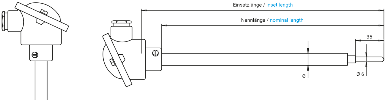 Thermometer mit 2 Messumformern ohne zusätzliches Schutzrohr Form MK