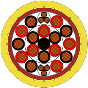 2,5 mm² Elemente und Adern in Lagen verdrillt, Element 10,0 mm² in der Mitte,