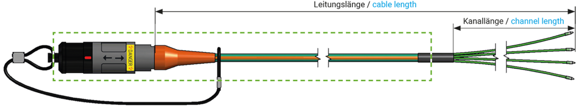 Anschluss- leitungslänge | Länge Kanal 1 | Länge Kanal 2 | Länge Kanal 3 | Länge Kanal 4 | Messspitze | |