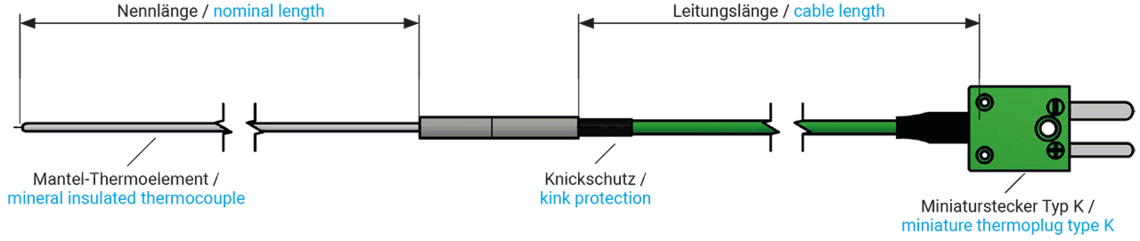 Dieses Mantel-Thermoelement mit Leitung ist durch seine Bauform und hohe Temperaturbeständigkeit vielseitig einsetzbar. Je nach Einsatzgebiet kann das Mantel-Thermoelement mit unterschiedlichen Thermoleitungen und Thermopaaren (z.B. Typ J oder Typ K) aufgebaut werden. Durch seine schlanke Bauform und dem flexiblen Mantelmaterial kann der Temperatursensor auch in schwer zugänglichen Positionen verbaut werden. In Verbindung mit einer entsprechenden Klemmverschraubung ist eine einfache Installation des Thermoelements gewährleistet werden.