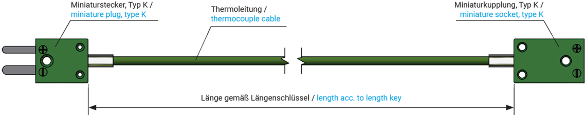 Diese 1-Kanal Thermoelement-Verlängerungsleitung für Typ K mit Miniaturstecker/Miniaturkupplung ist für den Einsatz in Schleppketten konstruiert und erprobt. Litzenleiter machen die Leitung flexibel für zwangsgeführte oder handbewegte Einsätze zur Übertragung der Thermospannung. Der robuste PUR Mantel ist Ölbeständig und abriebfest.
